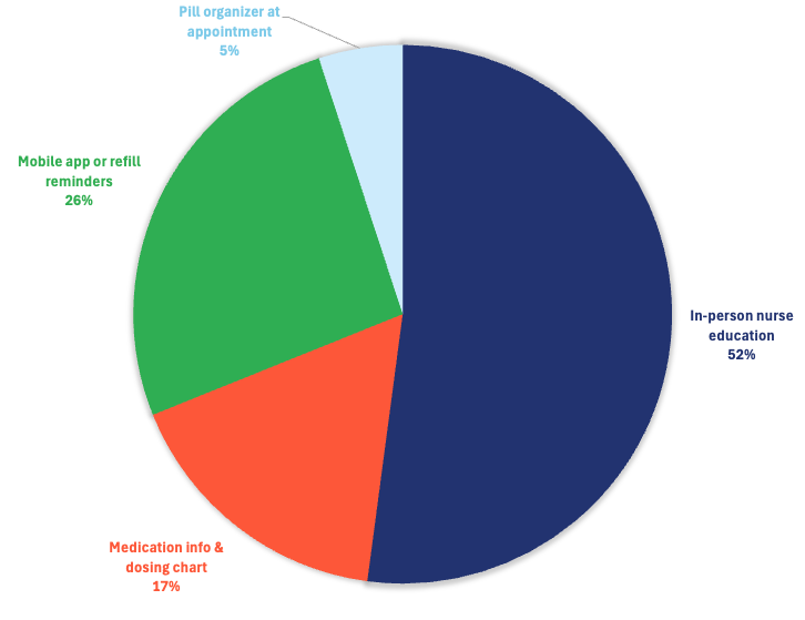 Fifty-four percent of you chose in-person nurse education — the most time-intensive, staff-dependent option on the list. That is not a coincidence, and it is not a soft answer. It is a clinically grounded one, and it lines up precisely with what behavioral science predicts.